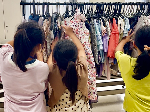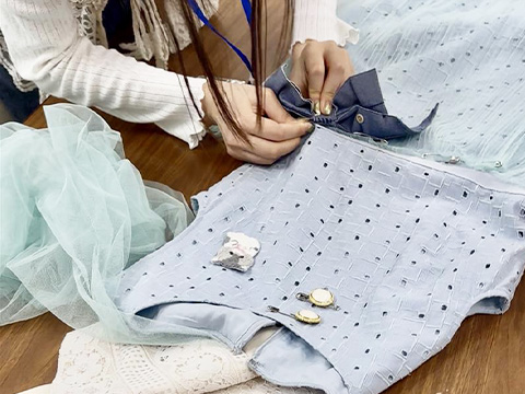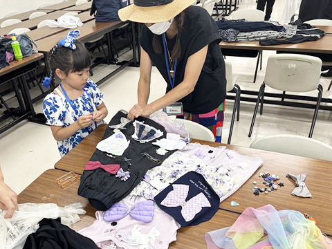 アップサイクルワークショップでは、オンワードのデザイナーやパタンナーの指導の元、子どもが着たい服を想像し、親御様がリメイク制作を実施。